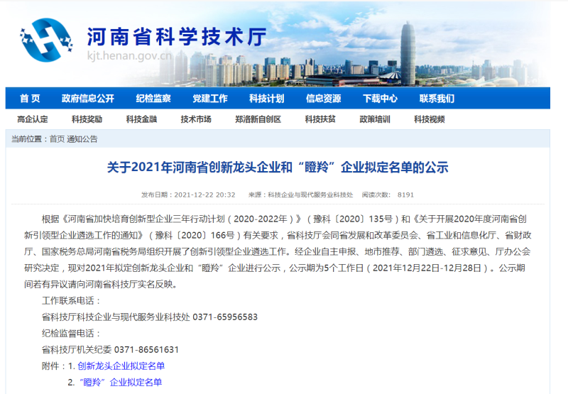 近日,河南省科學技術廳公布了2021年河南省“瞪羚”企業擬認定名單,洛陽科博思新材料科技有限公司成功入選。