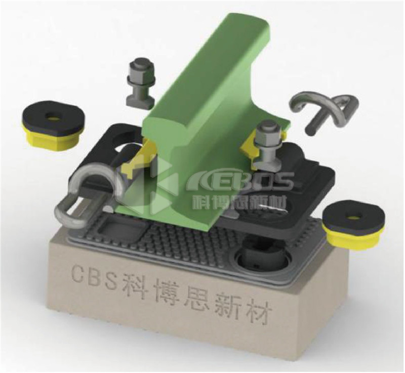 預埋式雙層非線性減振扣件主要由預埋鐵座、中間橡膠墊板、鐵墊板、軌下橡膠墊板以及彈條系統等組 成,屬于中等減振扣件范疇,具有優異的動態減振性能,相較于普通彈性分開式扣件減振達8dB以上, 可廣泛地應用于城市軌道交通線路中。